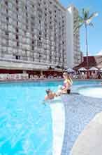 One of only seven deluxe hotels on Waikiki Beach. 9 miles from Honolulu International Airport, 4 miles from Downtown Honolulu and 1 mile from Kapiolani Park, Honolulu Zoo, Waikiki Aquarium. Features 872 rooms with air conditioning and balcony. Amenities include alarm clock/radio, cable TV, coffee maker, direct-dial telephone/data port/voicemail and refrigerator. Non-smoking and handicap rooms available. Lodging.com has negotiated special rates with this property to save you money. Click here for rates and availability.