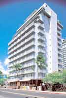 Steps to Waikiki Beach, 9 miles from Honolulu International Airport and 4 miles from Downtown Honolulu. Features 110 rooms with air conditioning and balcony. Amenitied include alarm clock/radio, color cable TV, Direct-dial telephone/data port/voice mail and refrigerator. Kitchenette includes microwave, cooking and dining utensils, toaster, coffee maker. Electric skillet and coffeemaker. Newspaper delivered daily except Sunday. Non-smoking rooms available. Lodging.com has negotiated special rates with this property to save you money. Click here for rates and availability.