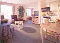 Every Spacious suite features seperate living and sleeping areas and a fully-equipped kitchen that is large enough for work, study or entertaining. Plus, all the comforts and convenience of home such as free local calls, two TV's, two phones with data ports, irons and ironing boards and more. Comfortable living room, complete with remote controlled TV and video player. Extra sleeping space with full size sleeper sofa. King size bed or two doubles, plus spacious bedroom closets. Extra remote controlled TV. Separate dressing area with extra large vanity. Lodging.com has negotiated special rates with this property to save you money. Click here for rates and availability.